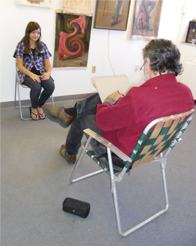 Jessica sat patiently for a sketch at an art show today. She smiled for 20 minutes straight. She loved every minute - even when her face hurt after she stopped smiling. The artist was talented and fast - and wouldn't accept any money. All this was only a few blocks from our house and across the street from the high school Jessica hopes to go to - Cooperative Arts and Humanities High School.